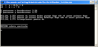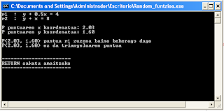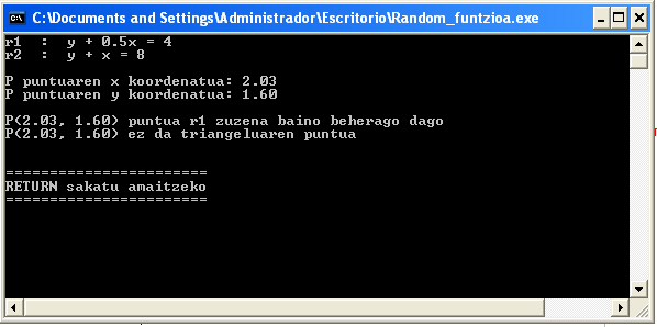 Ondoko irudian triangelu bat definitzen da r1, r2 eta OY ardatzaren artean. P puntu bat lortu aleatorioki (0, 0) eta (10, 10) esparruan dagoena eta zehaztu triangelukoa den ala ez. Puntu bat triangelukoa izateko triangeluaren barnean edo perimetroan egongo da.