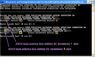 sKatea aldagaiaren zero posizioko karakterea sKatea[0] izanik, bere edukia kopuru bat da baina karaktere baten bitartez adierazita. Gogoratu ikusitako ASCII taula programa.