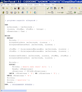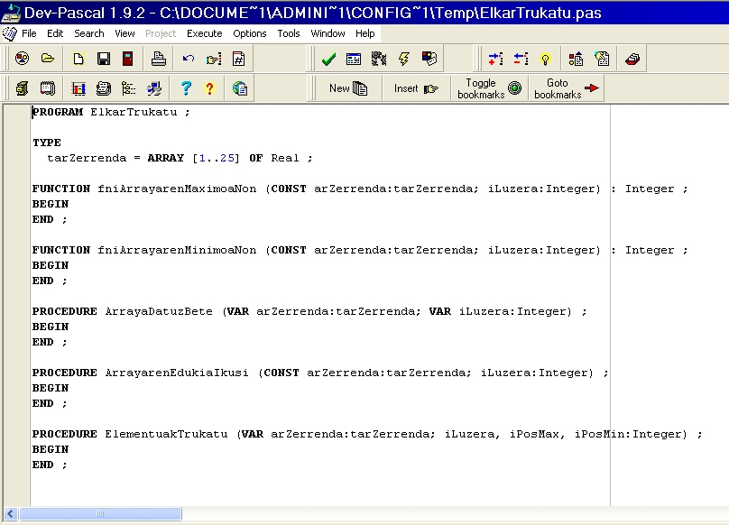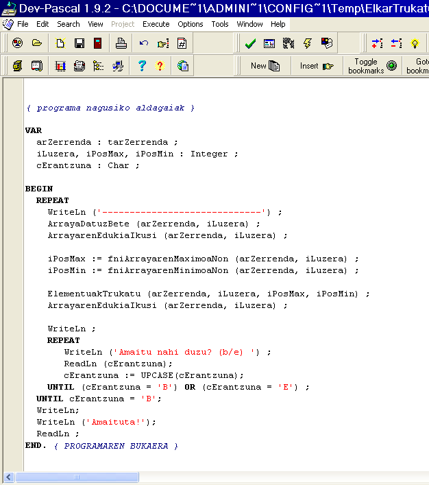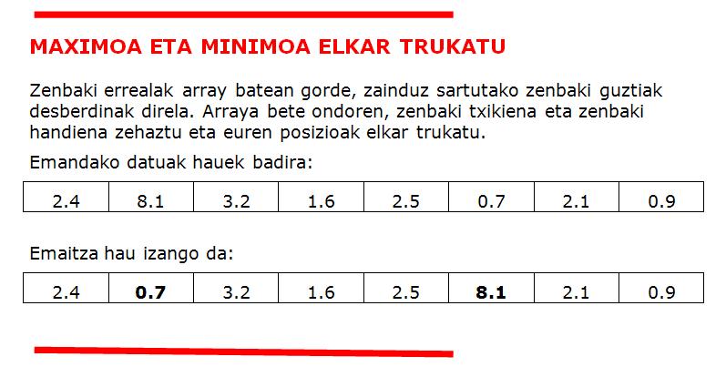 Hauxe da programaren lehen hurbilpena. Programa osoa ez da ematen baina bai bere egitura, zuen lana da hezardura horri haragia ezartzea:
